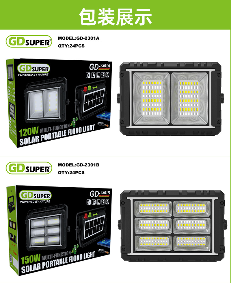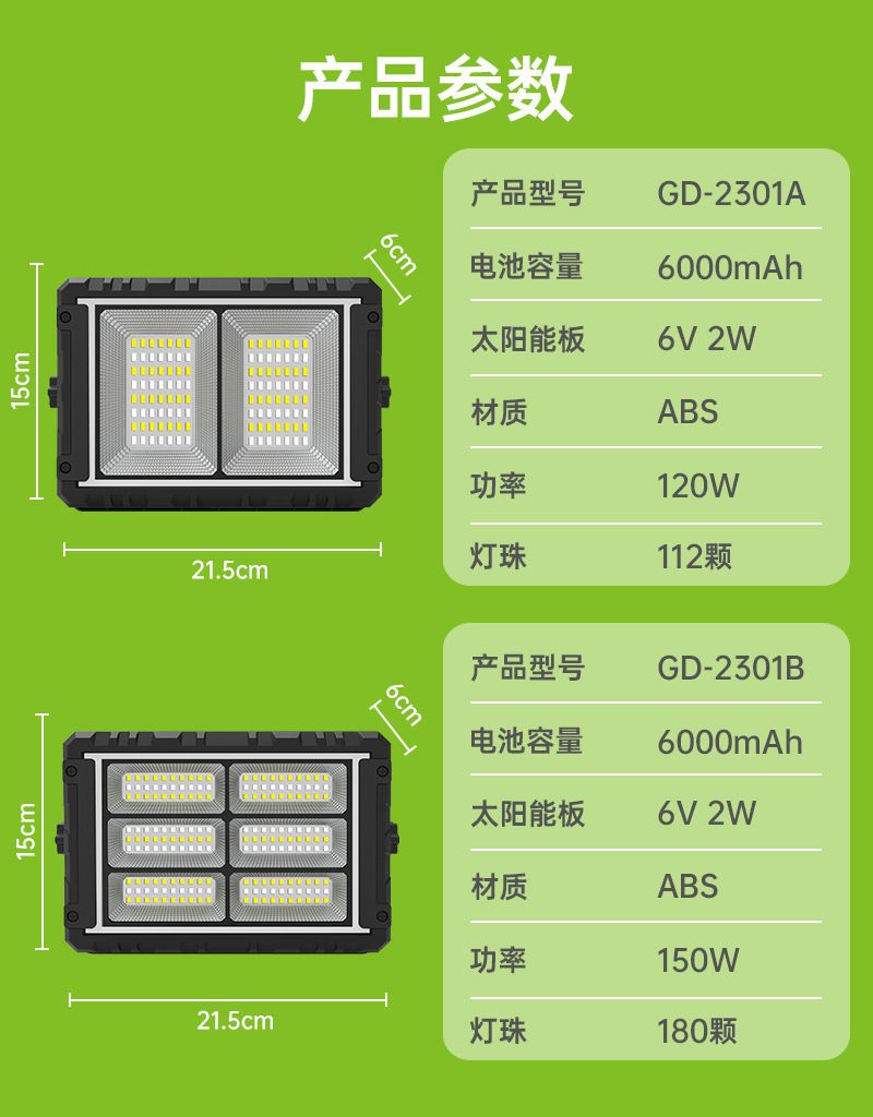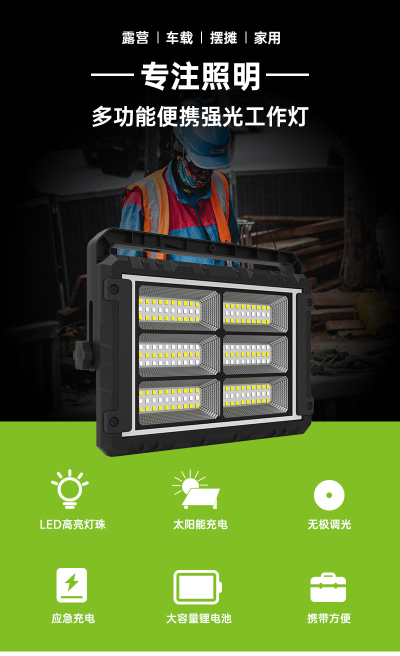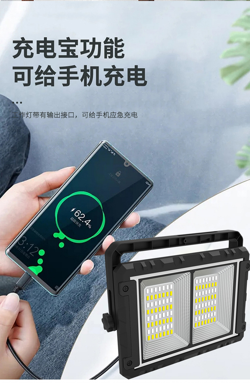 Non-Polar Heating And Cooling Adjustable Solar Panel Removable High Light Indoor And Outdoor Floodlight Portable Mobile Power Supply